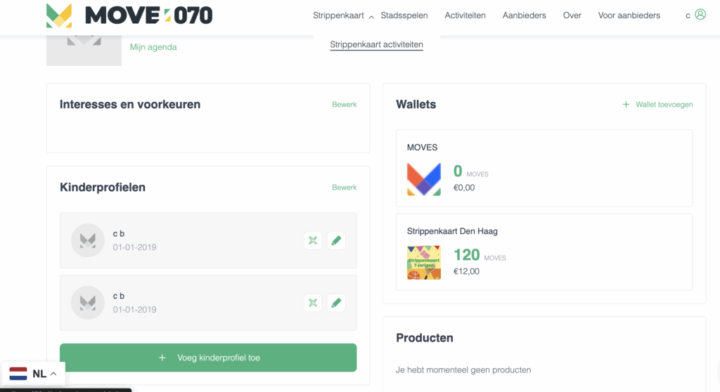 - Door te klikken op ‘Bekijk mijn activiteiten’ zie je alle activiteiten die je geboekt hebt.