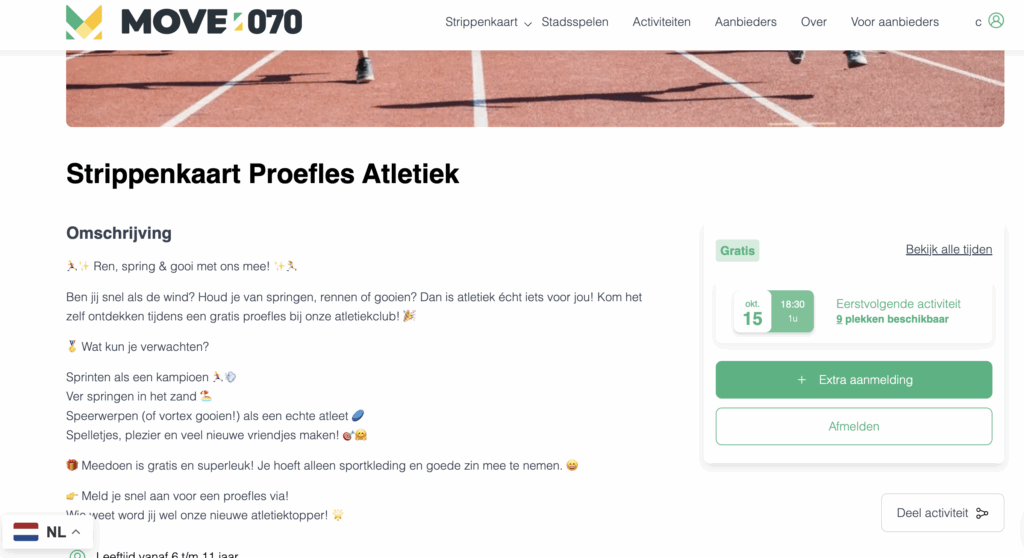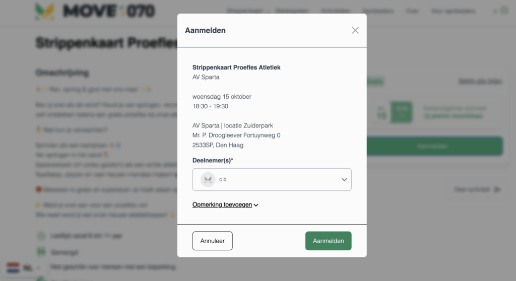 Wanneer je een leuke activiteit hebt gevonden klik je op ‘Aanmelden’.