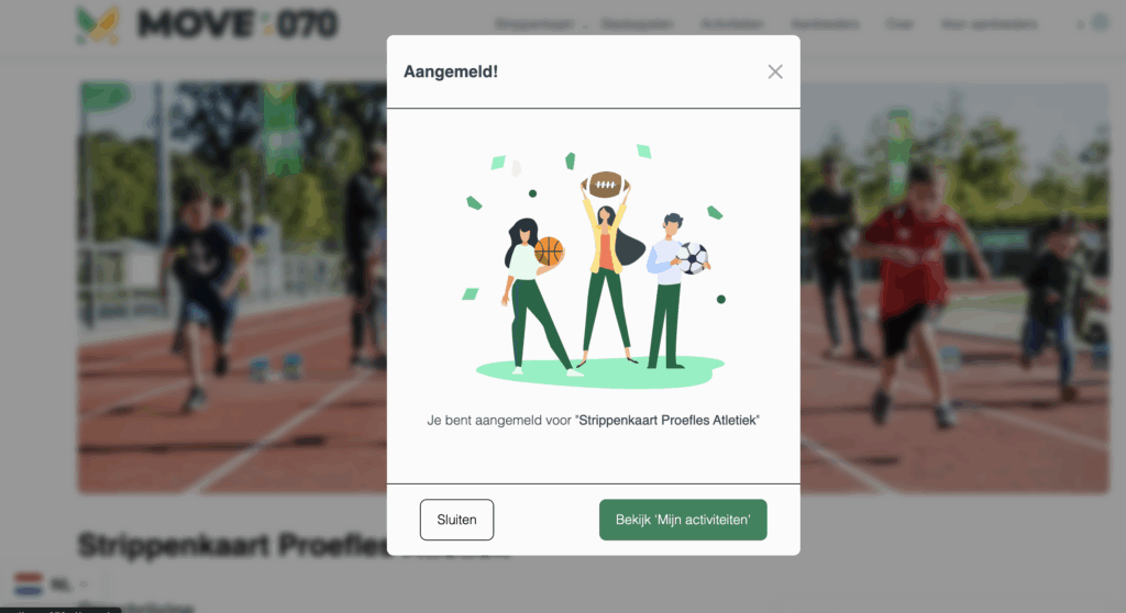 - Je bent nu aangemeld voor de activiteit! Je ontvangt ook een e-mail met alle informatie voor de activiteit